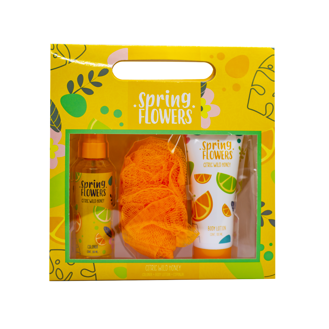 Fragancia Citric Wild Honey de SPRING FLOWERS. Incluye: Colonia + Body Lotion + Esponja